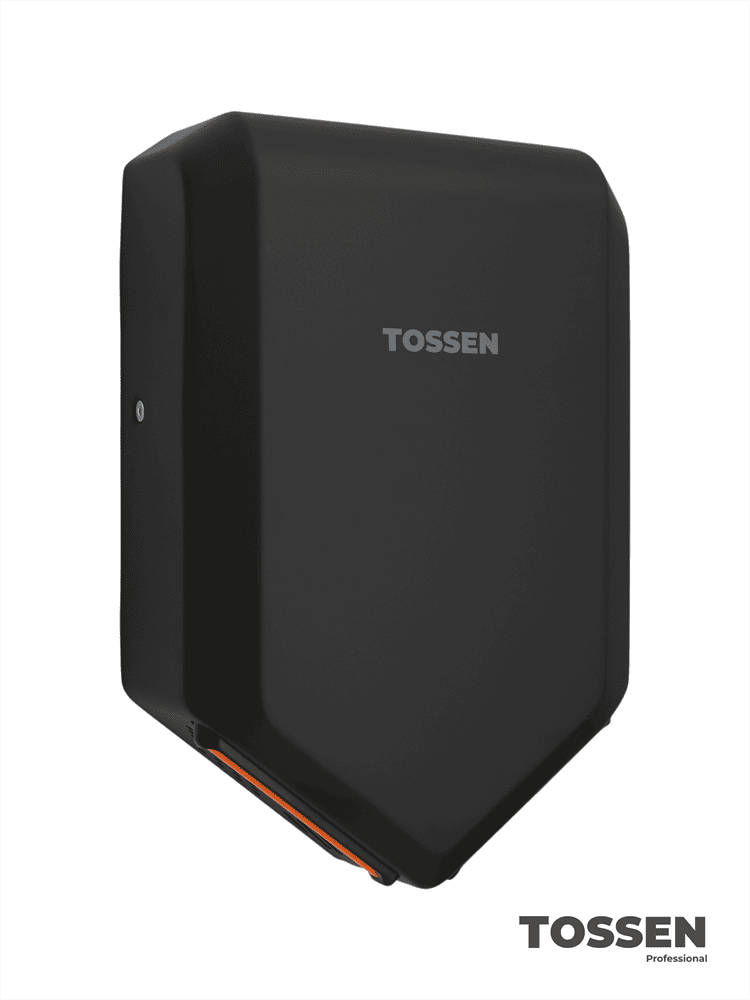 TOSSEN HS 1810 MB - высокоскоростная сушилка премиум класса. Система "воздушных лезвий", которые подают воздух со скоростью до 105 м/секунду эффективно удаляет воду с рук. Сушилка оснащается системой бесконтактного включения, HEPA фильтром и ультрафиолетовым обеззараживателем воздуха, что обеспечивает подачу на руки очищенного воздуха. Данный аппарат может подавать как холодный, так и горячий воздух, а также имеет регулировку скорости потока воздуха и чувствительности инфракрасного датчика включения. Ультратонкий корпус из высококачественной нержавеющей окрашен в стильный матовый черный цвет.