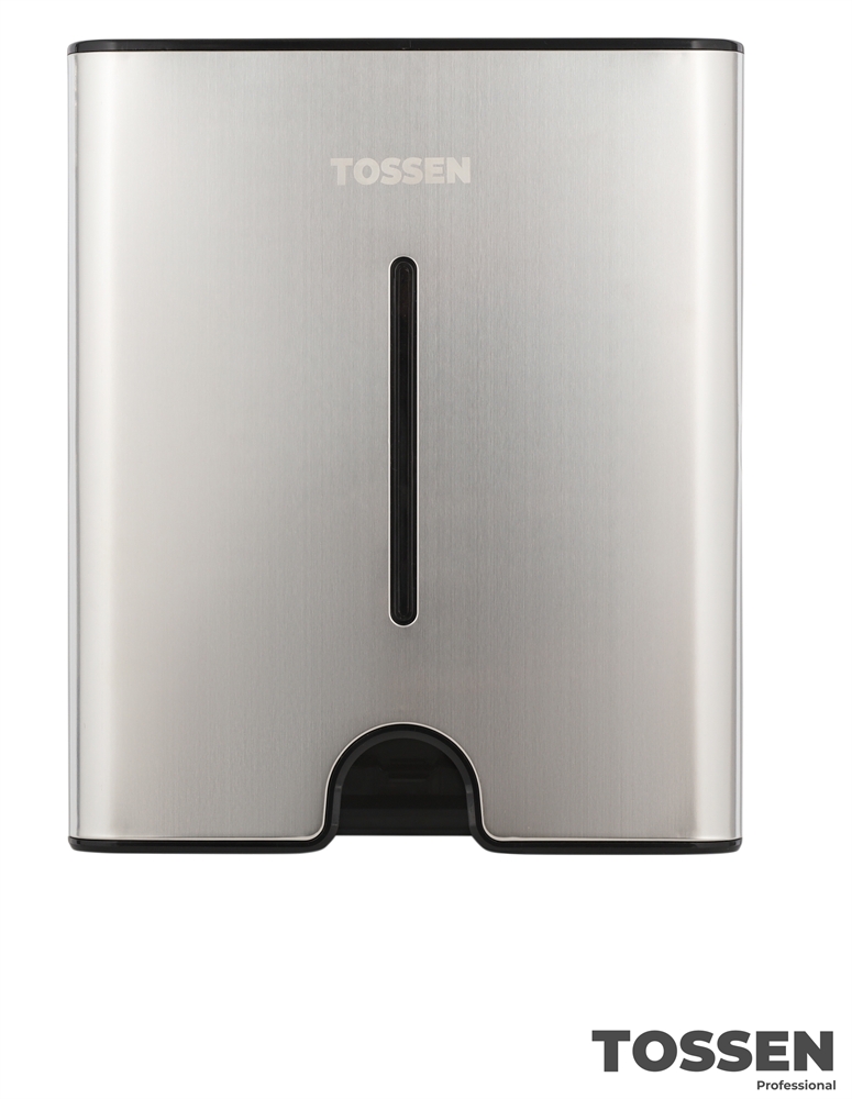 TOSSEN Z-500 M - стильный универсальный диспенсер бумажных полотенец Z и V/С сложения. Диспенсер оснащен замком, предотвращающим несанкционированный доступ к полотенцам. Смотровое окошко позволяет легко осуществлять контроль наличия полотенец. Модель Z-500 M выполнена из материалов премиального качества. Сочетание нержавеющей стали и ударопрочного пластика, делают диспенсер действительно стильным, благодаря чему, он будет гармонично смотреться в помещениях с самым изысканным дизайном.