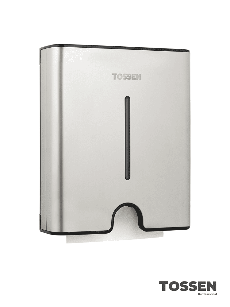 TOSSEN Z-500 M - стильный универсальный диспенсер бумажных полотенец Z сложения. Диспенсер оснащен замком, предотвращающим несанкционированный доступ к полотенцам. Смотровое окошко позволяет легко осуществлять контроль наличия полотенец. Модель Z-500 M выполнена из материалов премиального качества. Сочетание нержавеющей стали и ударопрочного пластика, делают диспенсер действительно стильным, благодаря чему, он будет гармонично смотреться в помещениях с самым изысканным дизайном.